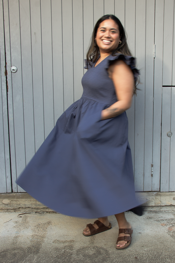 A party piece with comfort at the heart. A fully shirred bodice, deep pockets, and flutter sleeves make the Gather Dress perfect for a garden party, Sunday coffee, or anything in-between.